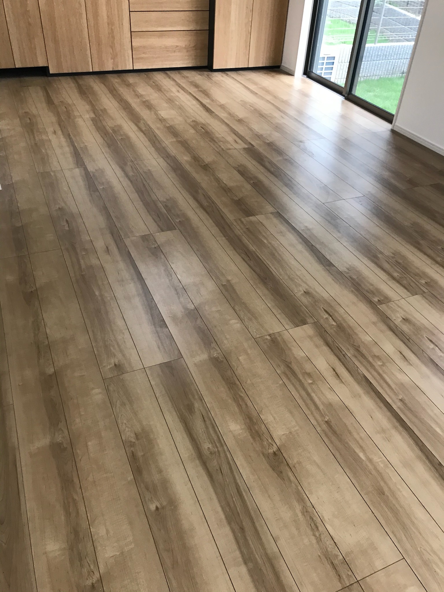 また、薬品やアルコールにも強いため、 普段のお手入れが簡単でメンテナンス性にも優れています。 ツヤを抑えたマットな質感は、木目を活かしたフローリングや ナチュラルテイストのインテリアと相性が良く、 住宅だけでなく店舗やオフィスにも最適です。